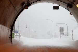 橋の上やトンネル出入口付近は風をさえぎるものがないので路面が凍結しやすくなります。このような場所では「凍結しているかもしれない」と予測して、速度を落とし、ハンドルをしっかり握って走行しましょう。